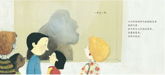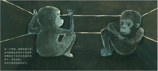对于那些热爱纽伯瑞获奖作品(2012)的人来说,艾波盖特创造了一本由真实故事改编而成的图画书。一只来自非洲中部的幼猩猩被抓获,并被带到了塔科马,华盛顿。最初,他生活在一个人类家庭里,和孩子们一样快乐的生活,在床上睡觉,去看棒球赛,吃冰淇淋。但当伊凡长得太大之后,他被卖掉了,27年以来,这只成年银背大猩猩生活在一个购物中心的笼子里。后来,抗议的市民写请愿书,使得伊凡去了一个更好的环境——亚特兰大动物园。书后附有更多关于伊凡的事迹和照片,登陆网站可以了解更多信息,还有一张伊凡用手指“签名”的手指画。卡拉斯用铅笔线条和水彩颜料饱含感情地描绘了伊凡温柔可爱的个性和这只温和的大猩猩如何赢得了成千上万人们和读者们的心。