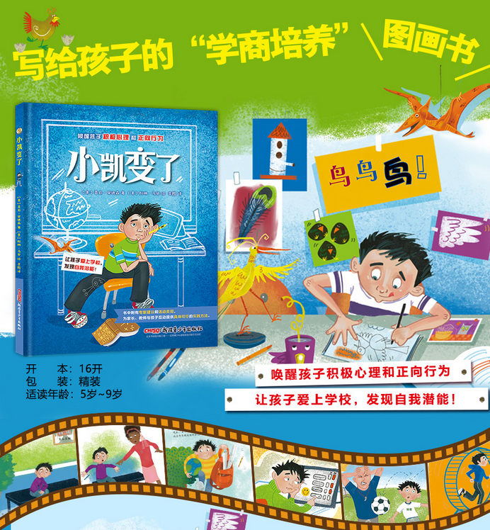 学习动力不足、成绩不佳的小凯在校长鼓励下,获得了发挥特长的机会,他的学习热情从此被唤醒,开始尝试用兴趣特长来辅助各门功课的学习。通过努力,小凯不仅把“分心”变成“分数”,还在其他方面也取得进步,完成了令人欣慰的成长蜕变。图画书采用故事和理论相结合的体例,书后辅以专家建议和活动支招,为教师和家长提供如何了解学生兴趣特点、帮助他们找到喜欢并有成效的学习方式、培养创造性思维、把学习内容与实际生活相结合等方面的实用指导,体现了因材施教、兴趣教学的教育智慧。