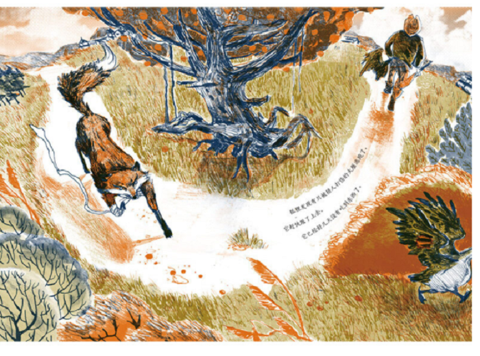 (对媒材和有限色彩的控制力展示出很高的绘画技巧,呈现出连贯而有机的美学风格。作品中塑造的动物性格特点鲜明丰满,对动物造型的描绘写实扎实。作品将一个带有传统民间特色的故事与现代的手法相结合,具有讽刺意味和幽默感。)