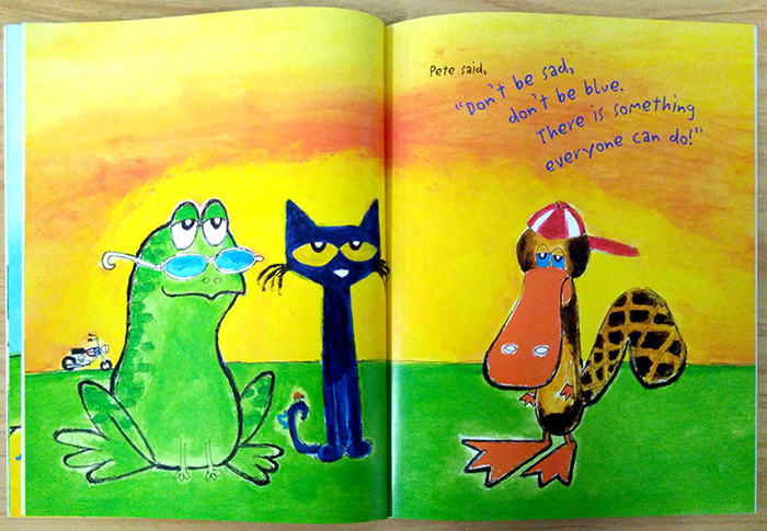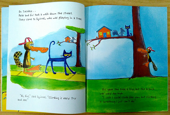 这是一本充满了对生活热爱的绘本,跟孩子一起体会快乐、阳光的生活态度,不要当成学英语的教材!皮特猫那种换角度看问题的轻松与快乐,相信能够感染你和你家宝贝的!