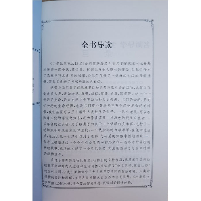 《小老鼠皮克历险记》是前苏联著名儿童文学作家维·比安基所著的一部小说、童话集。这部以动物为题材的作品,为我们揭示了森林中飞禽走兽的秘密,为我们展开了一幅鲜活生动的自然图景,带我们走进了神秘浩瀚的大自然。