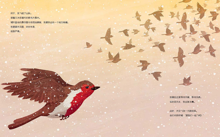 本书讲述了一只知更鸟在圣诞之前飞行了非常远的距离回到了它的家,它的伴侣身边。在这本书中,莫波格用优美而诗意的语言,将鸟儿渴望回家的急切心情表现得淋漓尽致……这是一本非比寻常的绘本故事,能够温暖任何人的心灵,也会满足那些喜欢将自然世界作为圣诞庆祝的重要部分的读者。——《科克斯书评》(重点评论)