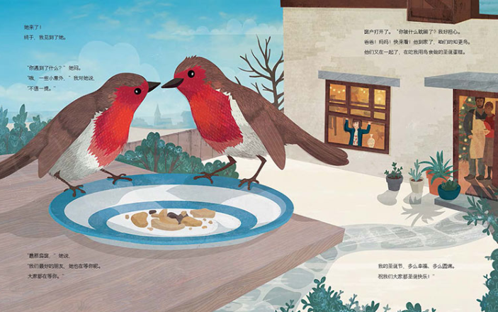 这本书中的图画以不同的视角,让读者更容易理解小鸟所面临的危险状况。这只知更鸟的回归,不仅仅是它的伴侣的期待,同时也为圣诞假日增添了令人满意的元素。——《书单》