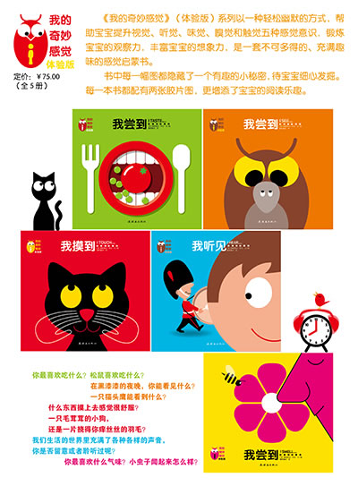 《我的奇妙感觉》(体验版)系列以一种轻松幽默的方式,帮助宝宝提升视觉、听觉、味觉、嗅觉和触觉五种感觉意识,锻炼宝宝的观察力,丰富宝宝的想象力,是一套不可多得的、充满趣味的感觉启蒙书。