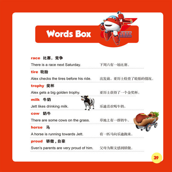 每本书分为两个部分:故事部分与学习部分。故事部分讲述了超级飞侠的神奇旅程,他们帮助孩子学会相信自己、信赖同伴、懂得合作的故事。学习部分为单词学习与世界小百科,帮助小读者巩固读故事时学习到的英语单词和句子,同时补充与故事相关的地理、历史、风俗、趣谈等相关知识,拓宽小读者的视野,让他们了解更多的世界风情。