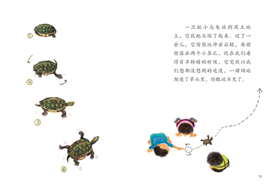 我家养的第一只乌龟是个捣蛋鬼,因为在爸爸的实验室到处闯祸,所以被爸爸抓回家来养。后来,家里的乌龟越来越多,我不用上自然课、不用到动物园,就能亲眼目睹乌龟的“居家生活”。我发现聪明的乌龟会暗示小主人帮忙挖好吃的蚯蚓,而且他们很爱吃贡丸,还会表演叠罗汉,大、中、小叠在一块儿晒太阳。另外还有不为人知的乌龟求婚记、乌龟生宝宝、乌龟冬眠等趣事,都是由我家的一百零一只乌龟共同主演的哦!