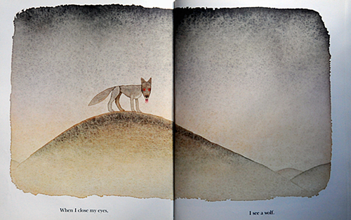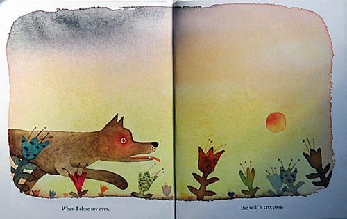 A little girl in the middle of waking up has a dream about a wolf chasing a lamb.