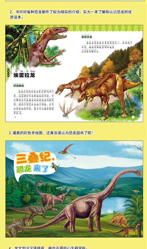 本书语言活泼生动,内容从恐龙的起源到恐龙的发展,至最后恐龙的灭绝,为小朋友一一呈现久远的恐龙世界。为了更深入地了解各种恐龙,书中列举了广受小读者喜爱、个性鲜明的恐龙,对其外形、食性、性情及喜好等做了形象的说明。我们还精心绘制了精美的插图,以图文并茂的形式给小朋友直观、精彩、酣畅淋漓的阅读享受。