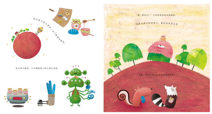 “他们在每一个星球上都能遇到与众不同的事物(小绿人,天王星上的卫生纸专卖店、银河店里的大鲨鱼)。明亮的动物形象,若真若幻,布满星星的宇宙框架,流畅的语句,西蒙和朋友们开始了充满奇幻色彩的冒险之旅。