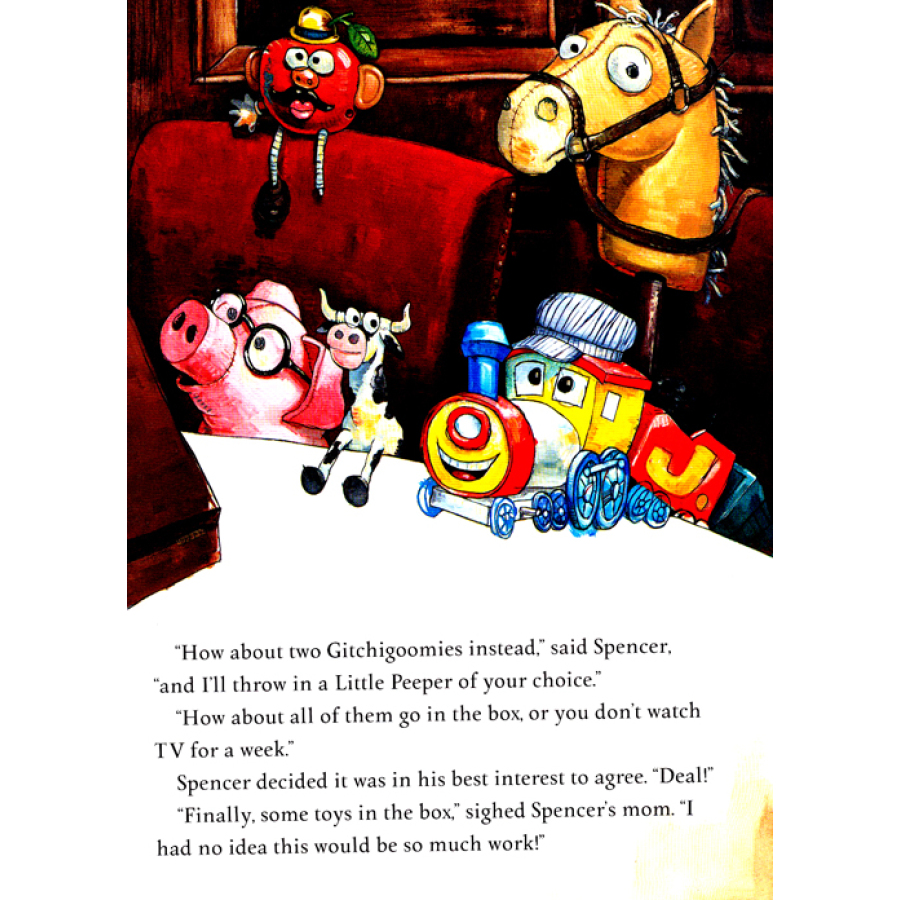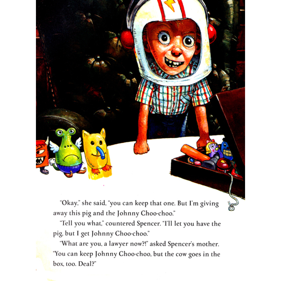 In many ways Spencer's situation epitomizes every child's fantasy-he has a toy collection that rivals a major toy store in depth and breadth. Simply cataloging the different types takes many engaging pages overflowing with brightly colored playthings. The problem is that the sheer number of toys has created multiple hazards. Tired of dodging disasters and sidestepping landslides, Spencer's mom decides that enough is enough and begins negotiating the downsizing of inventory. Savvy Spencer turns on the big sad eyes in order to protect his favorites. Mom's troubles do not stop there; the toy debate is weighted in the boy's favor by the constant deluge of gifts from friends and family. After sorting through the entire collection, he and his mother come up with a box of items to give away—only to find that the toy he refuses to part with is the box. A master at capturing the workings of a young mind, Shannon combines realistic dialogue with his boisterous illustrations to create another surefire hit. This book provides a pertinent and appealing read.