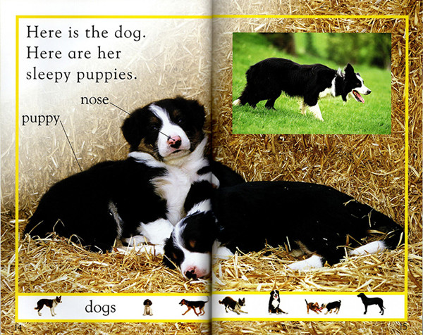 本册为《FARM ANIMALS》动物农场介绍了:农场的动物,包括chicken,turkey,pig,cow,dog,sheep等。