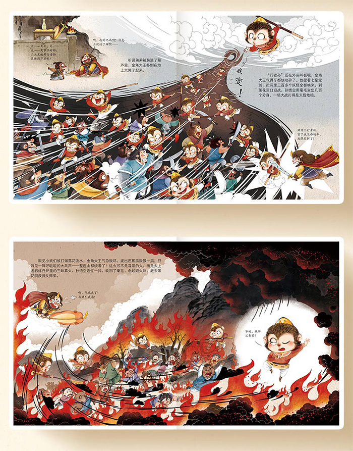 这是一套专为新生代儿童打造的《西游记》全彩长篇绘本,在尊重原著的基础上,采用东方感水墨萌绘和电影式分镜构图,画面大气写意,人物萌趣动感,语言简单浅白,适合作为孩子的第一套《西游记》启蒙书。