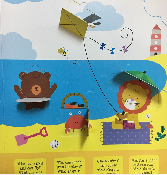一起翻开书页里各种形状的图案,去挖掘里面的惊喜吧!这本图画书为小朋友了解各种基本的几何图形而量身打造了丰富有趣的场景,通过翻翻书页的设计,将各种图形巧妙地融入了各个场景当中,它们有的是天空飞翔的风筝,有的是马戏团里的各种表演道具,也有的是城镇里忙碌的交通工具,更多好玩的场景等待小朋友去发掘。同时每个书页当中都隐藏着作者精心设计的谜题,这需要小朋友发挥观察能力和动手能力,去打开翻翻书页寻找答案。简洁的英文谜题,让小朋友一边与翻翻书的互动中享受乐趣,同时提高他们主动开口用英语模仿表达的能力。