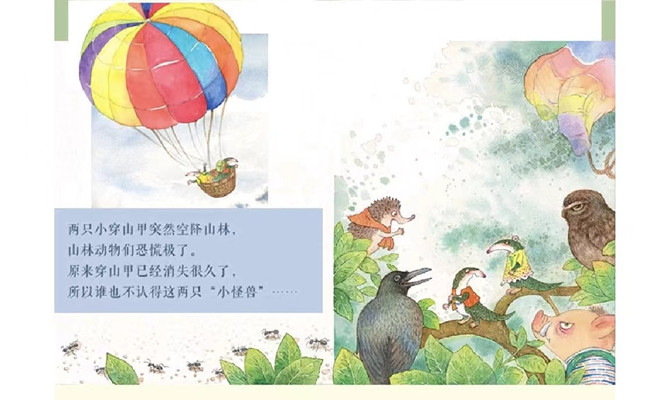 《山林里的“小怪兽”》 当两只小穿山甲突然空降山林后,山林动物们恐慌极了。原来穿山甲已经消失很久了,所以谁也不认得这两只怪兽。于是,老獾、野猪、猫头鹰、刺猬等动物巧妙设计将两只怪兽抓住。后来经过观察和相处,又从老石斑鱼那里得知这两只小动物不是怪兽而是山林里消失了的穿山甲。于是,山林动物们很快就和两只穿山甲成为朋友,得知它们的来历后,大家开始修一条通往穿山甲们隐居的“世外桃源的”暗道,希望他们能重新回到山林.... 生态主题:保护生物多样性,警惕物种灭绝。