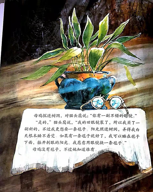 母鸡想要稻草人头上的草帽,稻草人请她去找个拐棍来和他交换。母鸡找到了獾,獾要求用丝带来换他的拐棍……母鸡遇到各种动物朋友,换来了他们想要的东西,也换到了自己想要的草帽。