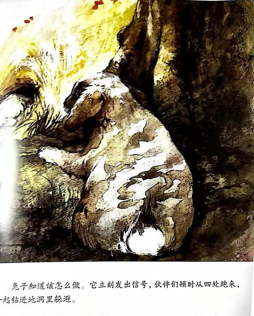 兔子听到附近有人类的脚步声,赶紧躲进洞里。小动物们躲在洞里,仔细听着外面的动静,是什么东西在慢慢靠近呢?地下的朋友和地上的朋友通过小小的洞互相观望,趣味无穷。