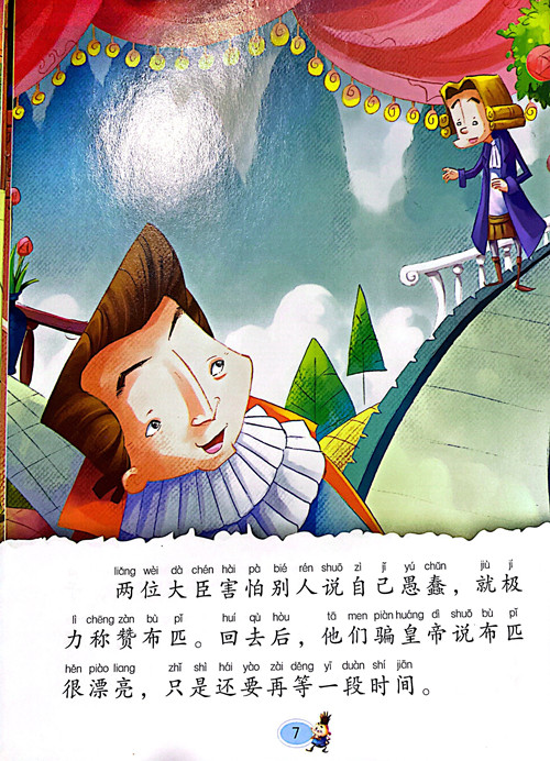 这篇童话通过一个愚蠢的皇帝被两个骗子愚弄,穿上了一件看不见的——实际上根本不存在的新装,赤裸裸地举行游行大典的丑剧,深刻地揭露了皇帝昏庸及大小官吏虚伪、奸诈、愚蠢的丑恶本质。褒扬了无私无畏、敢于揭假的天真烂漫的童心。