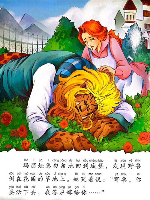 一位高傲的王子在宏伟古堡独居,因拒绝一名貌丑老婆婆借宿,被施咒变成了野兽,连这位王子的仆人都变成各样家具,要解除魔咒就要这位变成野兽的王子学会真心待人。漂亮善良的姑娘贝儿为救父亲被逼与野兽同居古堡。几个回合之后,他们产生了难以想像的感情。反派加斯顿是一个长相英俊、身体强壮的男人,镇上每个女人都爱恋他,他一直追求贝儿,但贝儿始终看不上他,为了要挟贝儿和他结婚,他甚至串通疯人院的院长要把贝儿的父亲送进疯人院。然而大坏蛋加斯顿突然到城堡袭击野兽,令其身受重伤,贝儿没有伺机逃跑,与野兽一同打倒了加斯顿 。