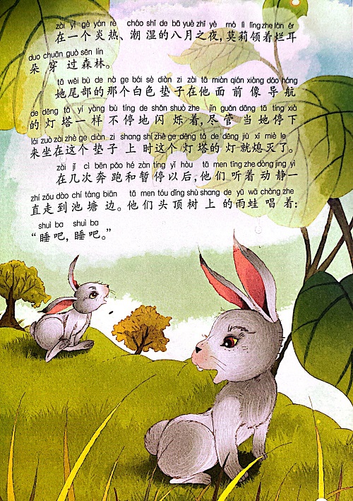 野兔莫莉是善良尽职的妈妈,循循善诱,教会了烂耳朵各种生存技巧。危急时刻,它又多次挽救了孩子的性命。曾经饱受外来兔子的欺负,好在烂耳朵设计除掉了那只讨厌的兔子。晚年身体衰弱,为了躲避狐狸,入冷水被淹死。烂耳朵兔子小时候被毒蛇咬伤了耳朵,在妈妈的帮助下迅速成长,变成了一只充满智慧和力量的兔子,能躲开老鹰、猎狗,利用植物生存。同时,还能设计除掉讨厌的大兔子。妈妈去世后,烂耳朵成了家,过着快乐的生活。