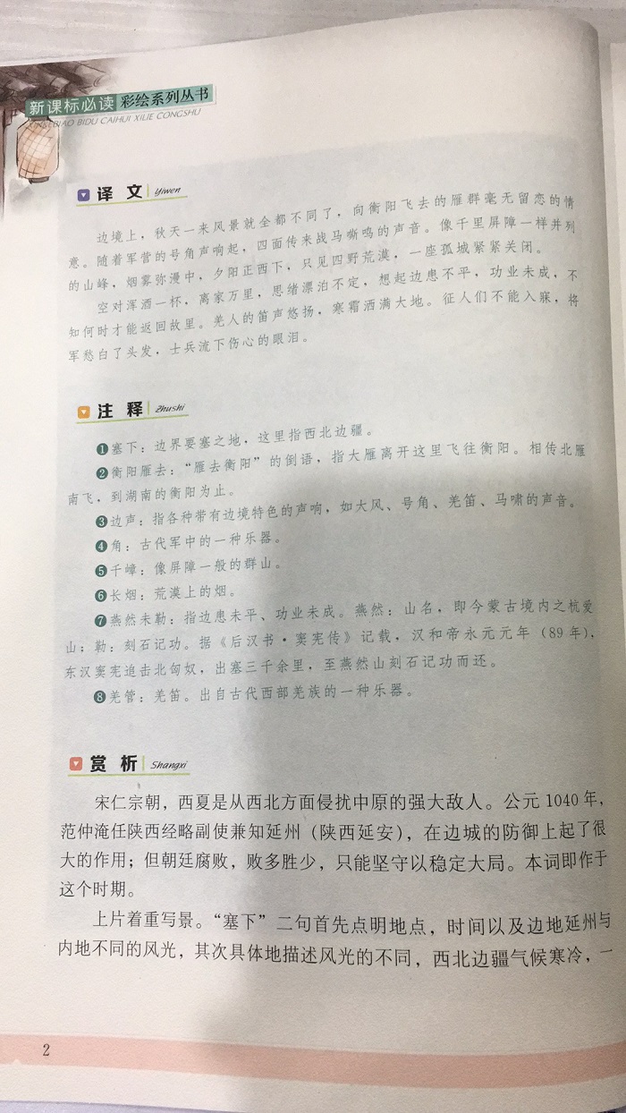 宋仁宗朝,西夏是从西北方面侵扰中原的强大敌人。公元1040年,范仲淹任陕西经略副使兼知延州(陕西延安),在边城的防御上起了很大的作用;但朝廷腐败,败多胜少,只能坚守以稳定大局。本词即作于这个时期。