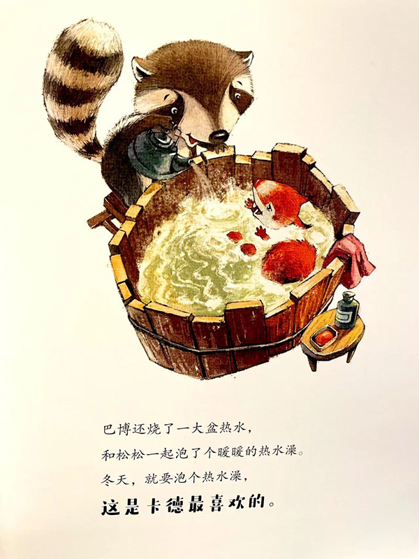 卡德出远门的第二天,巴博准备了一大桌可口的美食,邀请邻居小松鼠松松共进晚餐……卡德出远门的第三天,巴博看了一本又一本故事书……卡德出远门的第四天,巴博找出自己的小提琴……卡德出远门的第五天,雪又下大了。明天,卡德就要回来了……