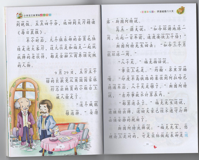 《环游地球八十天》是法国著名科幻小说家凡尔纳的一部经典之作,小说讲述的是这样一个故事——英国绅士斐利亚·福克说环游地球一周只需要八十天,他的朋友们都认为这是根本做不到的事情,于是他们打起赌来,赌注为两万英镑。当晚,福克先生和仆人路路通就出发了。一路上,他们克服了重重艰难险阻,终于在八十天内成功地环绕地球一圈,并回到了伦敦。在旅行中,福克先生的机智、勇敢和毅力被作者描写得淋漓尽致,还描写了主人翁十足的绅士派头,最后抱得美人归——他在印度救出了一个殉葬的王公妻子。同时,便衣警察菲克斯也在一路跟踪福克先生,因为他认定福克先生就是偷窃英格兰银行的大盗。