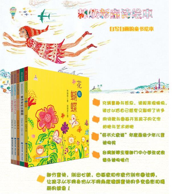 童诗是儿童*容易亲近的文学体验,让他们用游戏、吟唱的方式去学习和感受文字的魅力。林焕彰的诗歌,所描述的事和物,均取材于儿童熟悉的动物、日常生活经验和循环的季节,以充满创意的想象,引导儿童观察生活,并从一个新奇的角度轻轻地思考人生。这套诗集就像孩子的朋友,又像孩子的启蒙导师,让孩子在阅读中学会热爱自然、热爱生活,培养孩子文学敏感度的同时,还培养了孩子向真、向善、向美的情操。更有部分童诗,别出心裁,由画家和作家分别作图诠释,让孩子从不同身份从不同角度理解童诗的多变色彩和瑰丽的想象!