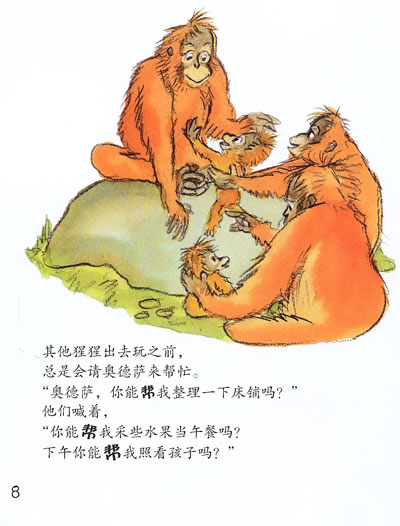奥德萨是一只小猩猩,她经常帮助别人,不过,她每件事都要用一根手指来记住。直到有一天,她的手指不够用了,因为找她帮忙的人实在太多了。这时,大家都把手指借给她,而且还有了意想不到的结果……