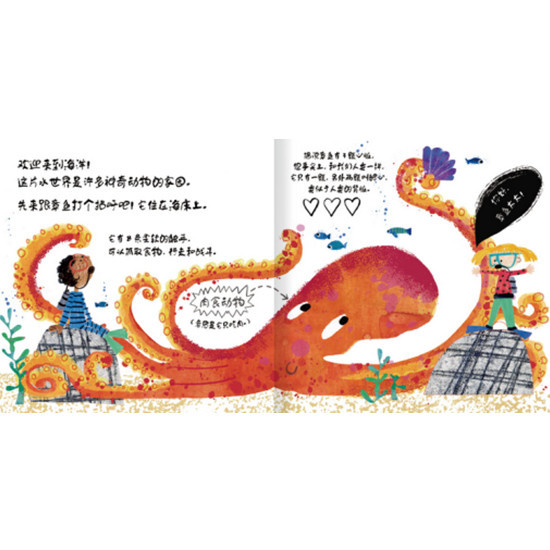 这本书介绍了10种可爱的海洋动物,不仅介绍了它们的名字,还介绍了它们的身体奥秘、食性,以及生存技巧等,比如深海鮟鱇头上长有发光器,水母没有大脑、眼睛和心脏……,趣味知识点多多,能够满足小朋友对动物的所有好奇。