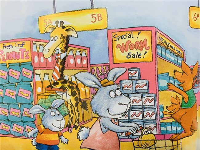 小兔子跟着妈妈去超市购物,买了虫子、胡萝卜和花生。小兔子最喜欢胡萝卜了,可妈妈只卖一根,买了三罐他最害怕的虫子。小兔子能否成功说服妈妈买多点自己喜欢的胡萝卜呢?