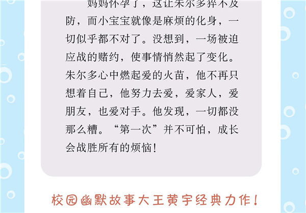 妈妈怀孕了,可朱尔多还没做好准备。有了小宝宝,麻烦是不是将 从此开始?朱尔多和最好的朋友胡小涂闹翻了;金刚不断挑衅朱尔多 还妄想把他变成光头……朱尔多的烦恼太多了! 一场被迫应战的赌约使情况发生了变化。观察日记点燃了朱尔多心 中爱的火苗,他不再只想着自己,他努力去爱,爱家人,爱朋友,也爱 对手。他发现,一切都没那么糟。“第一次”并不可怕,成长会战胜所 有的烦恼!