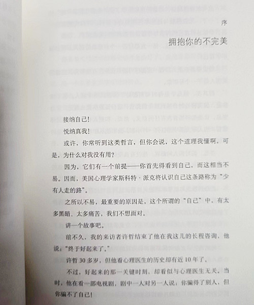 我们一直以为一些负面情绪,如坏习惯、痛苦、悲伤、愤怒、恐惧等是不好的,甚至认为这些是不完美的,阻碍了我们成长,我们努力去避免和克服它们。作者从新的角度、用心理学的知识告诉我们,这些坏情绪,对我们有极大的帮助和正面意义。这些情绪是伴随我们一生的,而且这些情绪并不是我们的敌人,是我们的朋友,我们应该接纳它们,并要感谢它们让我们越来越坚强,体验更多生命的无限精彩。真实胜过完美。我们要做的不是灭掉内心的魔鬼,而是去认识并拥抱它,活出真正的自我!