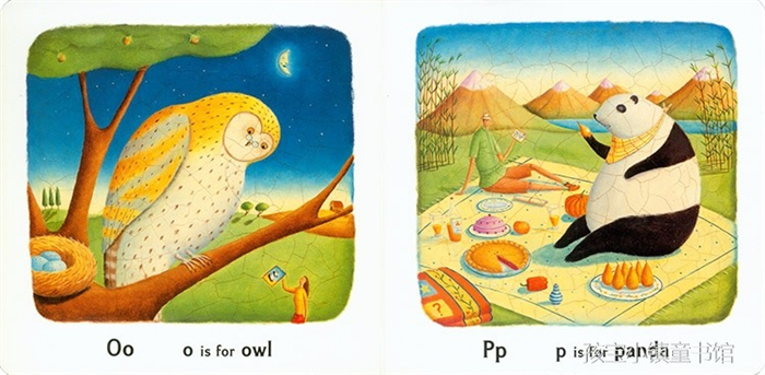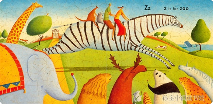 而且每一页的画面上有许多以其字母开头的东西,以D为例,除了画面中的小狗Dog以外,还有桌上的甜甜圈Donut,背后的门Door,壁画上的鸭子Duck……但书中的玄机远不止如此。其实这也是一个完整的故事,书中的情 节可以从A串到Z,原来,这是一个发生在动物园里的故事。 这本书的画面丰富,作者的画风别具一格,犹如蛋壳一般。字数虽少,可是观察的越仔细,你就会找到更多好玩的地方!