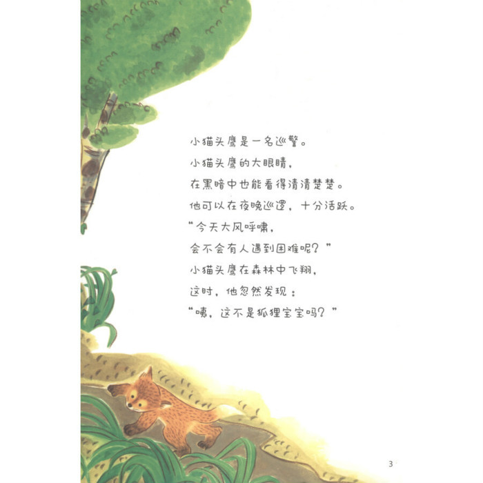 大桥惠美子文的、大久保宏昭图的'小猫头鹰巡警(铃木绘本)/成长是什么'讲述了猫头鹰是森林里的小小巡视员。有 他看到一只小狐狸正在四处寻找什么。原来 小狐狸把给爸爸画的一幅画弄丢了 很伤心。于是 小猫头鹰就开始帮狐狸宝宝找画。他飞过了很多地方 途中还帮小兔子找到了她的花手绢。小猫头鹰问了很多森林里的小动物 很后 萤火虫提着小灯笼 终于和猫头鹰一起找到了画……