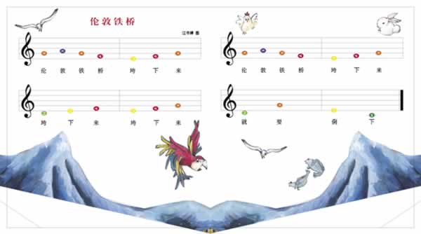 除了小钢琴和能够站立的琴谱之外,书中的情境图也是值得一提的亮点。四位风格迥异的知名插画家,为每支儿歌创作了色彩缤纷、充满童趣的情境图,让孩子能用情境图说故事,激发想象和创意。这种寓教于乐的玩具书,无论用于家庭中的亲子游戏,还是用于幼儿园中的课堂游戏,都是很棒的选择。