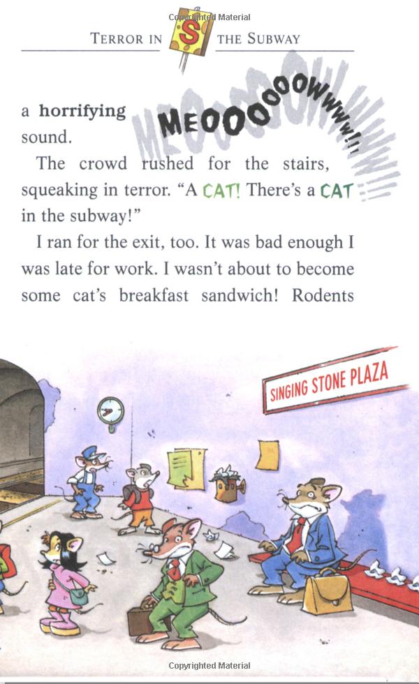 When my sister Thea told me a ghost was haunting New Mouse City's subway tunnels, I knew I had to get the scoop for The Rodents Gazette! So I set off with Thea, Trap, and my assistant editor Pinky Pick. We soon discovered that Sally Ratmousen, the editor of The Daily Rat, was also on the trail of the mysterious ghost. But we were all in for the fright of our wee mouse lives... because the ghost turned out to be a CAT!