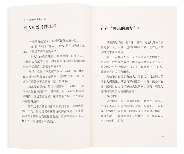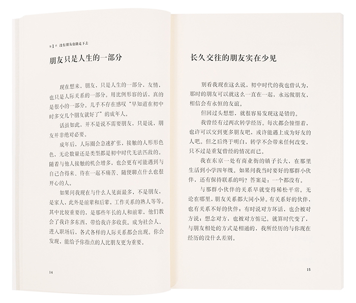 但这种想法其实根本没必要。大部分成年人,会强调朋友与友情的重要,并对此大讲特讲。然而,正是这种对友情的理想描绘给了人压力。面对不能多交朋友的自己,朋友太少的自己,不会与朋友好好相处的自己,你苦恼起来。