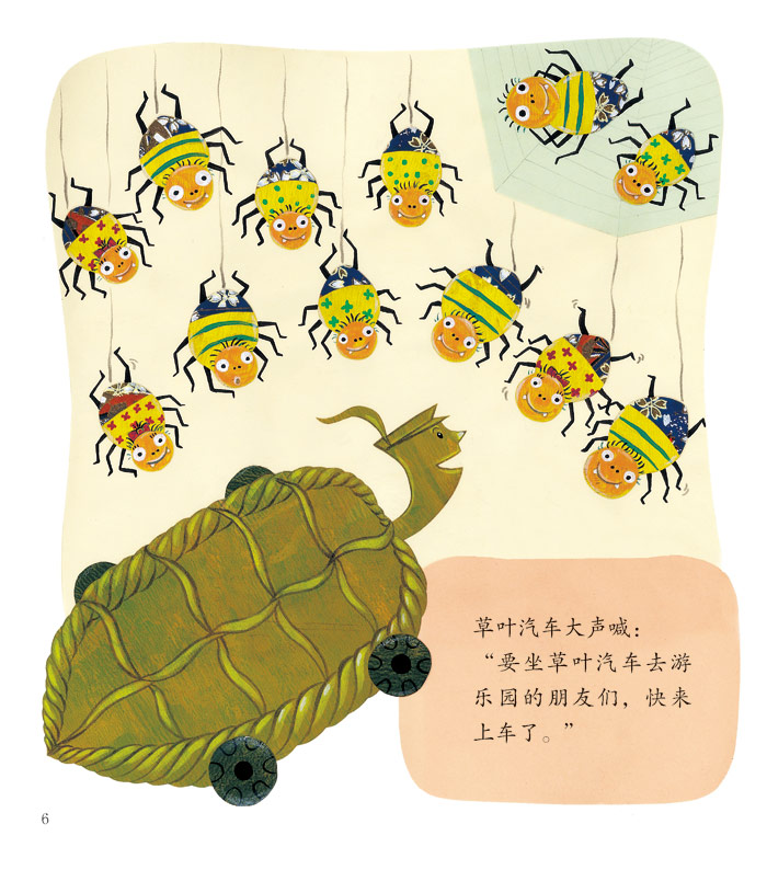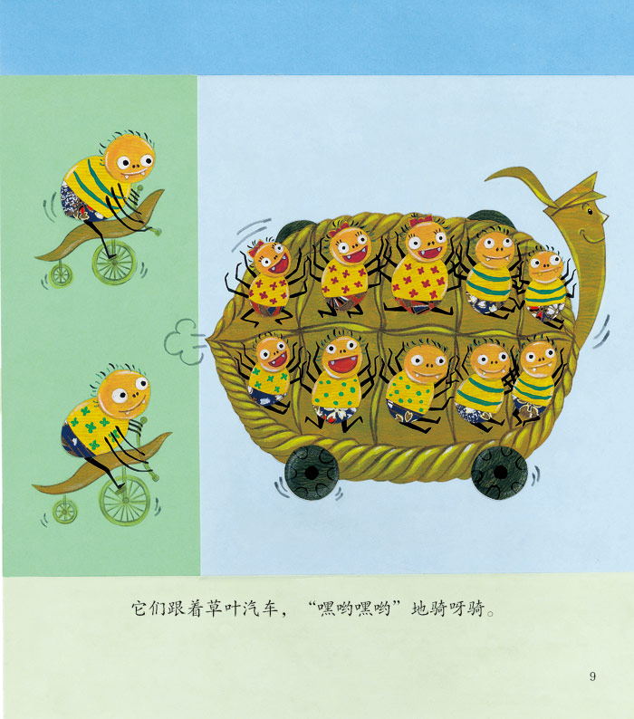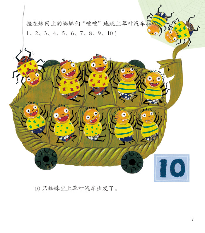 《嗖嗖的叶子车》 数与运算:两位数的计算 “嗖嗖嗖——”树叶汽车和自行车来到了蜘蛛村。“嘣嘣嘣——”草叶汽车和自行车来到了蚂蚱村。汽车和自行车跑过了小山坡,跑进了热闹的游乐园。眼花的售票员蜗牛阿姨能数清一共来了多少只蜘蛛和蚂蚱吗?