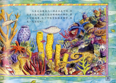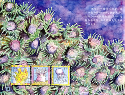 海底的珊瑚礁蕴藏着许多神秘的城市,里面充满了美丽的色彩和蓬勃的生命。你只要穿上潜水服,就可以和鹦嘴鱼一起去参观美丽的珊瑚礁了。