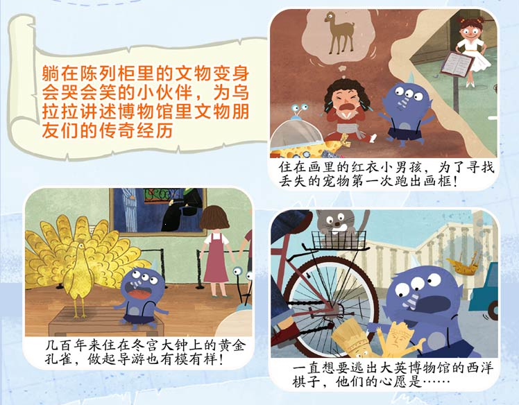 在这套《世界博物馆奇妙之旅》中,参观博物馆这件听起来似乎有些枯燥无趣的事情,摇身一变成了孩子们爱听的冒险故事。故事中,文物不再是无法触碰的阳春白雪,而是化身成会哭会笑的一个个活灵活现的角色,与主人公——外星小怪兽乌拉拉一起,在世界ZUI著名的五大博物馆中进行一场有趣刺激的冒险。