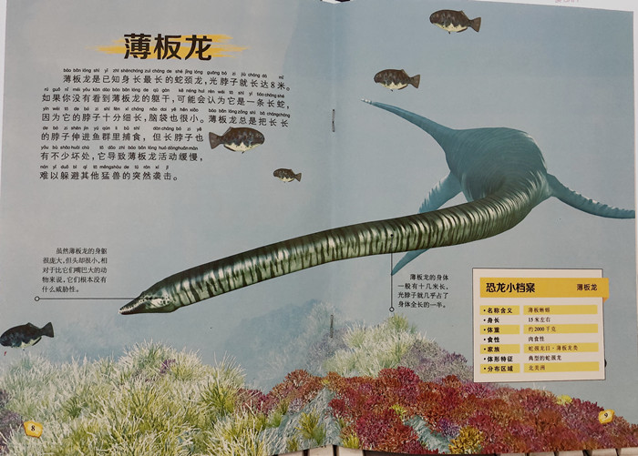 本书主要用精美的图片来展示神秘又有趣的恐龙世界,简洁活泼的文字则起辅助说明的作用,这种编排方式符合幼儿的阅读心理。而且正文还加注了拼音,既能让父母和孩子进行阅读,也能培养孩子自主阅读的能力。