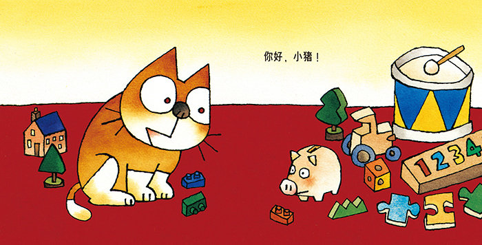 《猫咪困了》:阿布想睡觉了,可是到处都不是他想睡觉的地方。钢琴上太吵了,浴室太潮湿了,椅子底下不是个房间,最后他终于找到了最舒服的地方——主人的腿上。