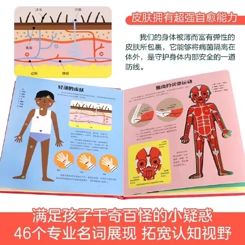 身体像一个大机器一样,每天都在认真工作。你知道*的肌肉是哪一块吗?长大后,骨骼的数量真的会变少吗?书中6块巧妙的 pvc 设计,可以形象地透视骨骼的分布、血液的流向等,让孩子体验互动乐趣。用孩子易懂的语言来讲述身体知识,带孩子认识身体,了解自己。从头到脚,告诉你关于身体的奥秘!