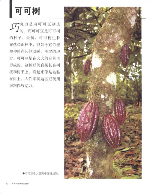 《我们爱地球·南美洲最神奇的植物》内容简介:从亚马孙热带雨林到广阔的草原、高山和沙漠,南美洲拥有许多不同的自然景观。现在,让我们一起来认识南美洲这片土地上最神奇的十种植物吧!动物们为什么不吃箭毒藤?巧克力是来自于可可树吗?为什么青蛙会将卵产在帝国凤梨中?