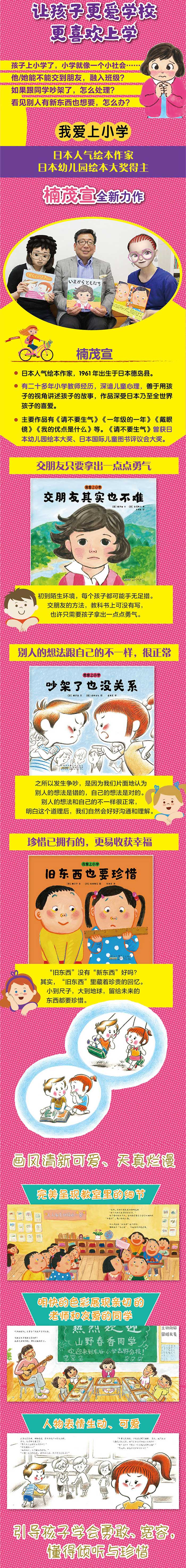 《交朋友其实也不难》讲述了从大城市转学到乡下分校的小香如何与大家成为朋友,次见面的大家用包容和鼓励给了小香满满的爱。一本给予孩子勇气、宽容之心接纳新朋友的绘本。《吵架了也没关系》以青梅竹马的优豆和玛丽娜吵架为开端,随后引发了班级被分裂成男生女生两派,很终达成和解的故事。这本绘本教会了孩子们接纳价值观和自己不同的人,学会沟通交流。《旧东西也要珍惜》讲述了娜娜本来因为用姐姐用过的尺子觉得很丢脸,但是当她听了老师对“旧东西”的回忆后,对“旧东西”的看法发生了很大的改变。从尺子到地球,我们都要珍惜。