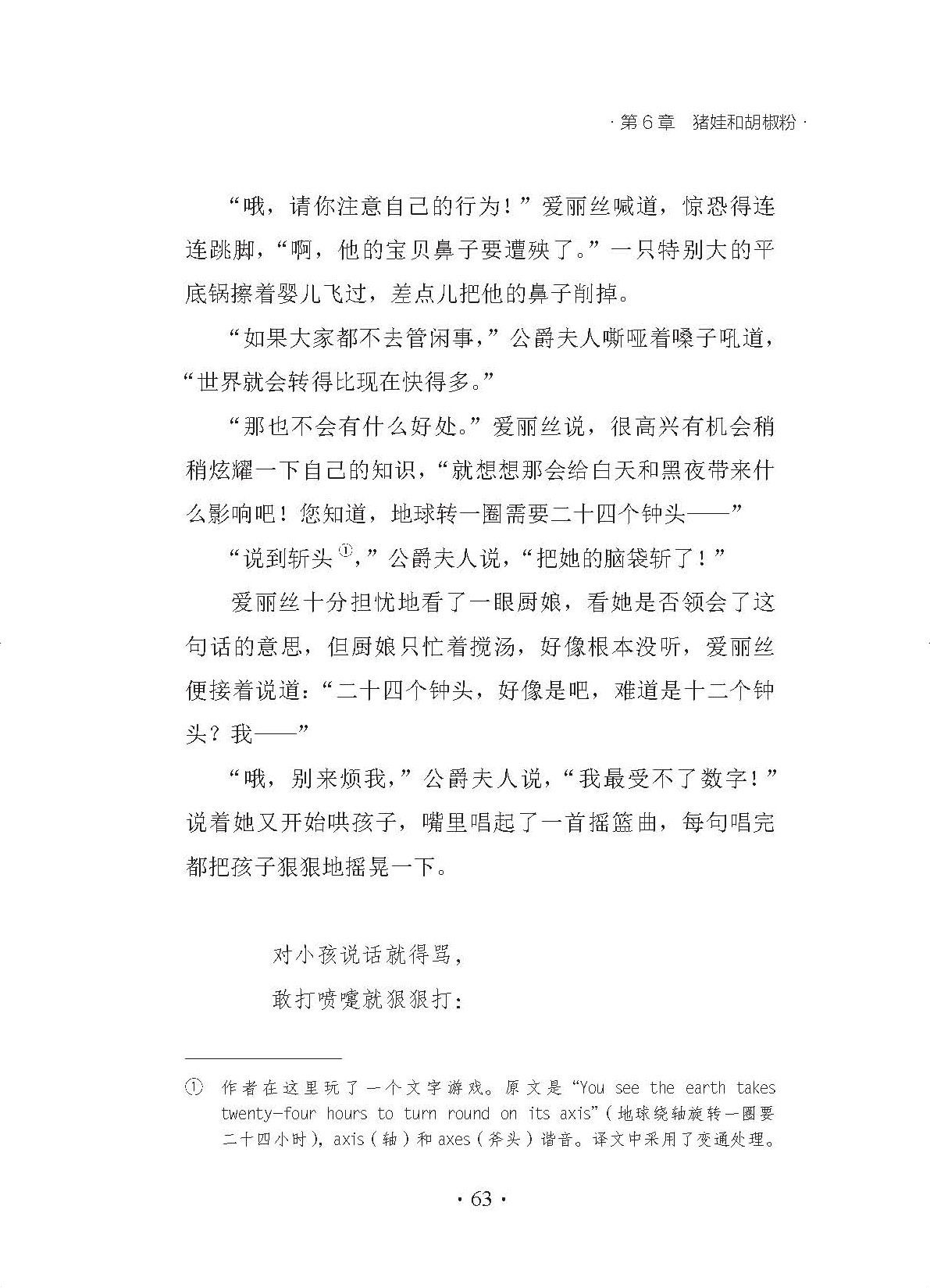 “好啦,这么哭哭啼啼有什么用!”爱丽丝对自己说,口气非常严厉,“我建议你立刻停止!”她一般都会给自己非常好的建议(但很少能照着做),有时她把自己骂得那么狠,把眼泪都骂出来了。她还记得有一次扇了自己几个耳光,就因为她在自己跟自己玩儿槌球比赛时作弊了——这个奇怪的孩子特别喜欢假装自己是两个人。“可是现在假装成两个人有什么用呢!”可怜的爱丽丝想,“唉,我只剩下这么点儿,都凑不成一个像样的人了!”