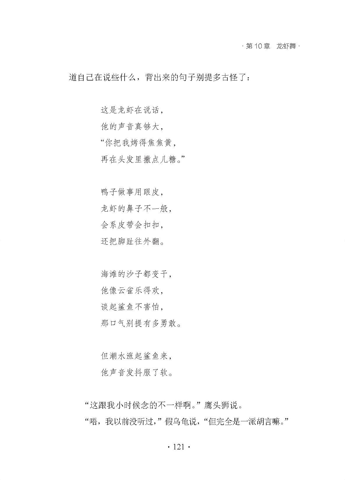爱丽丝便也跟着跳了进去,压根儿没有想过自己怎么再从洞里出来。
