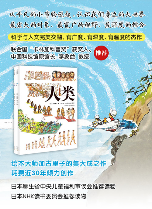 本套装共四册,分册名分别为《海》《宇宙》《地球》《人类》。从身边的一只虫子、一片贝壳、一棵小草开始,一点点将宇宙、地球和大海的奥秘展现在读者眼前;从宇宙大爆炸和生命的诞生说起,介绍人体的奥秘,展望人类的过去、现在和未来……这套书以举重若轻的方式,徐徐展开一幅幅壮美的科学画卷。作者加古里子是东京大学的工学博士,曾在东京大学、东京都立大学等学校任教,他以严谨的科学精神和对科学的热爱,穷尽30余年的心血创作出了这套绘本,引导着无数孩子走上了求知与探索的旅程。