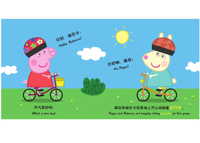 《佩奇与家人》 这是一本帮助宝宝认识家庭成员的洞洞书。通过生活化的场景、轻松有趣的对话、巧妙的洞洞翻翻立体设计,引导宝宝跟着佩奇一起认识爸爸、妈妈、爷爷、奶奶等熟悉的家庭成员,以及他们各自的特点,中英双语,实用有趣!