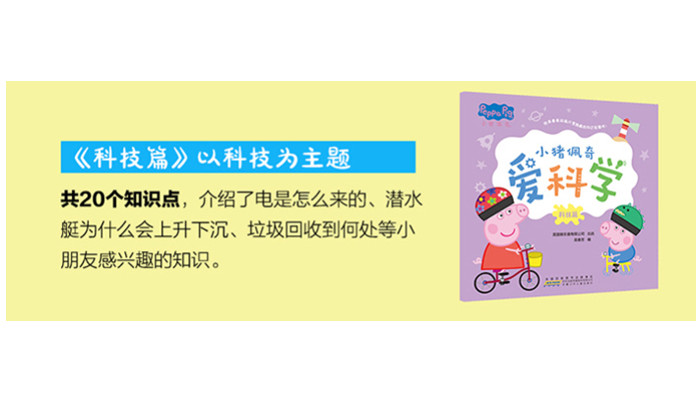 1. 从幼儿心理出发,选取宝贝容易问喜欢问的经典问题。青蛙为什么能跳得远?大象的鼻子为什么那么长?蝴蝶为什么是五颜六色的……这些小问号都是宝贝甚至是你一直好奇的! 2. 从生活场景出发,激发宝贝抓住无处不在的科学瞬间。打雷,停电,打嗝……只要我们留心,就会发现科学无时不在、无处不在。 3. 从思考能力出发,教会宝贝善于观察巧用联想的方法。用小伙伴手拉手来比喻小水滴凝结成云朵从而下雨的过程,用搭积木城堡来解释房子是怎么建成的……深入浅出,通俗易懂。 4. 从习惯品格出发,培养宝贝热爱生活独立生活的技能。刷牙的正确方式,玩雪的时候注意保暖措施……学到知识的同时,让宝贝get更多生活技能。 嘿,宝妈们,当你的宝贝沉迷于这只粉红猪小妹的时候,你Get到她确实是一个宝藏女孩了吗?她不仅让宝贝放声大笑,帮助他们养成好品德和好习惯,甚至她和爸妈的相处方式赐予你为人父母的智慧。但你也许没想到,她还能教会宝贝学会思考,爱上科学! 快来跟佩奇一起,在百问百答中提高智商吧!